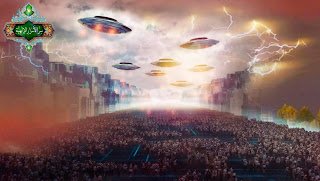 ..... يومئذ يخرج من كان في القبور .. وعلى وجوههم النور .. يحملون حراب من نار ونحاس .. يرددون يامنصور .. يا حي يامخرج من في القبور .. قائدهم على رأسه تاج .. يحمل بيده التابوت .. ذاك هو الحي الذي لا يموت .. يظهر عند اقتراب النجم الثاقب من القمر .. فعند ذلك تزلزل الارض زلزالها .. وتخرج اثقالها .. وتلتف الساق بالساق ..