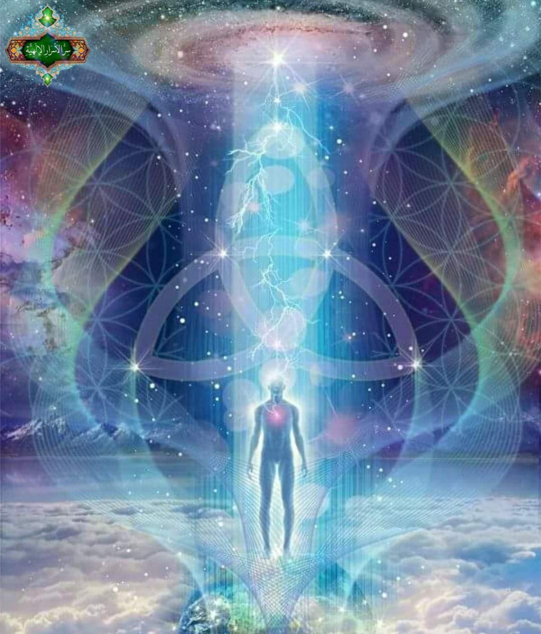 فتنفتح بوابة السماء السابعة الباطنية ( الخاصة بالغدة ) والمتصلة بالعرش عبر عمود النور .. فتتجه تلك الطاقات إلى العرش لكي تشتد وتزداد قوة وقدرة ثم تنزل من العرش في نفس العمود إلى( الغدة الصنوبرية )