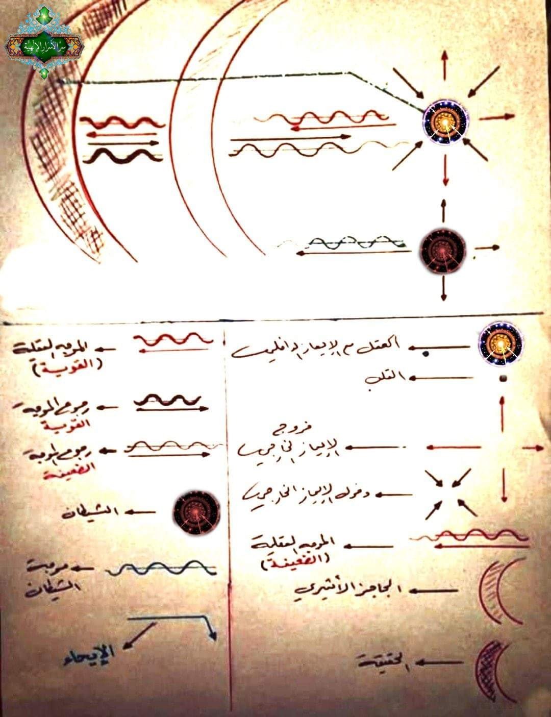 الايحاء : هو تلقي المعنى او النور في القلب من الحقيقة بشكل مباشر دون واسطة تذكر الا ( الاثير ) فإنه يمر عبر الحاجز الاثيري وصولاً الى قلب المتلقي تبعاً لصفاء قلبه وطهارته ..